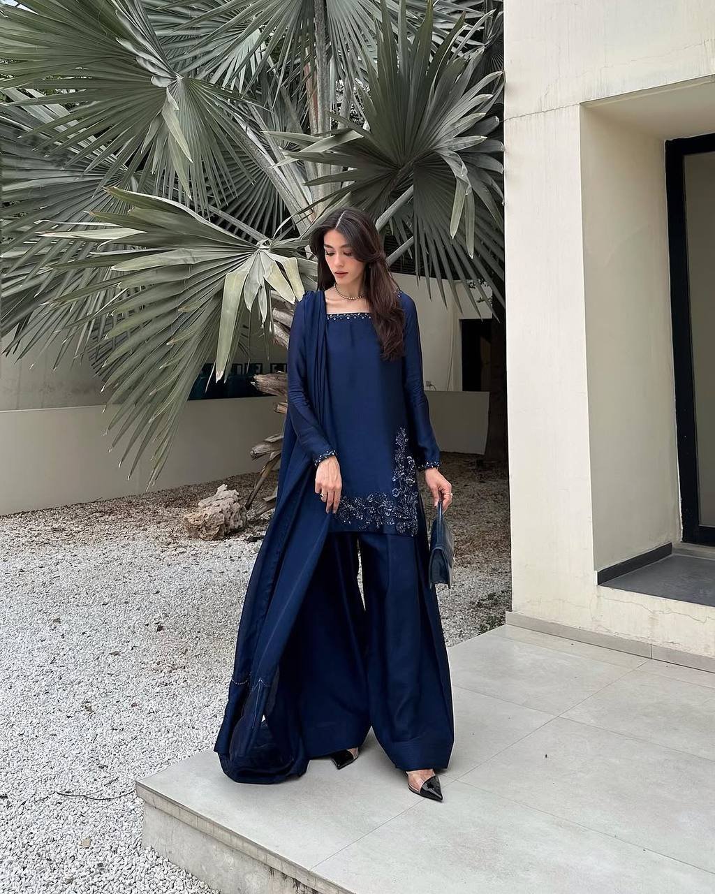 Discover timeless elegance with our fully stitched Natural Crepe Silk Top-Bottom and Dupatta Set. This exquisite designer collection is crafted for comfort and style, featuring delicate embroidery and sequence work. Perfect for festive celebrations, special events, or adding a touch of sophistication to your daily wear.